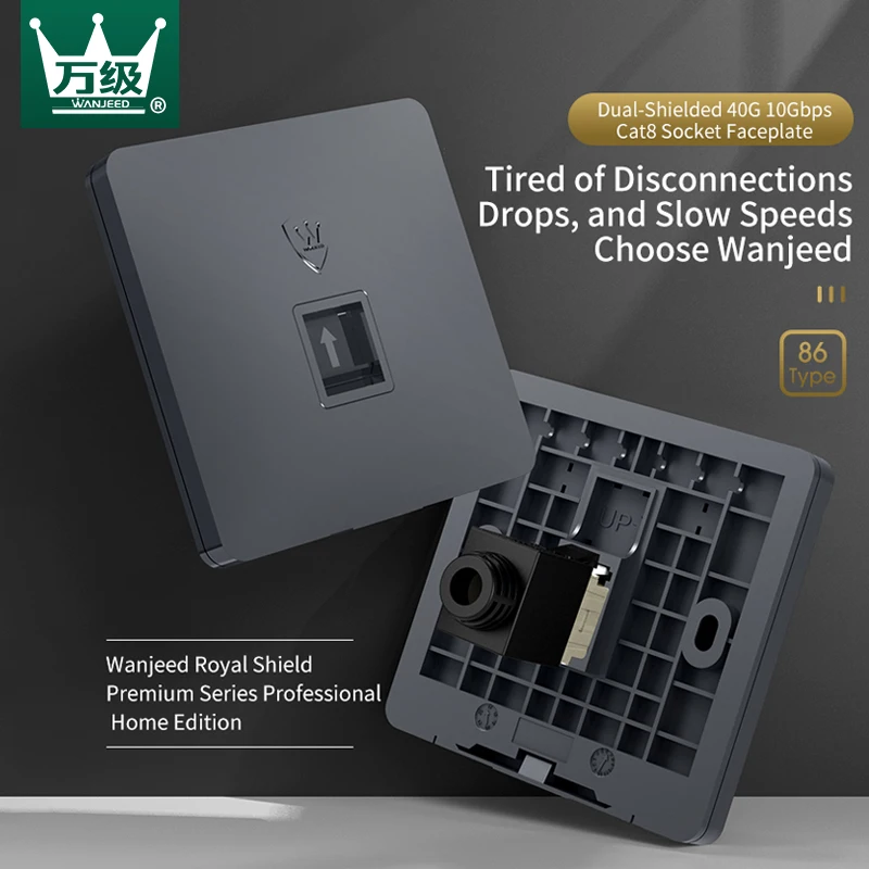 WANJEED 86x86mm Network Faceplate Wall Outlets 1Port 2Port with CAT8 keystone Jack Ethernet Modular Wallplate