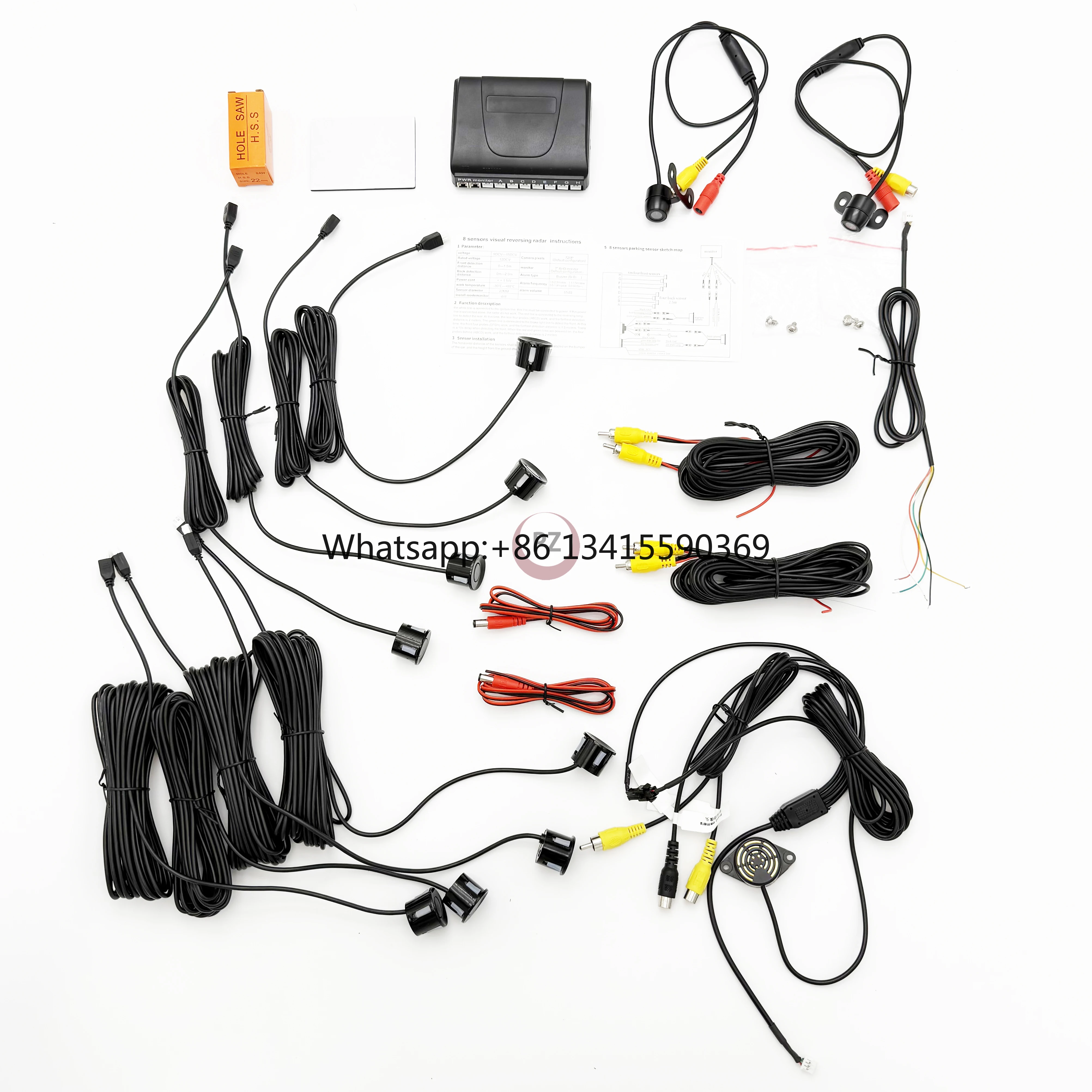 8 Sensor Front Rear View Parking Assist Kit Obstacle Distance Detection 2 Cameras Parking Sensor System For Car