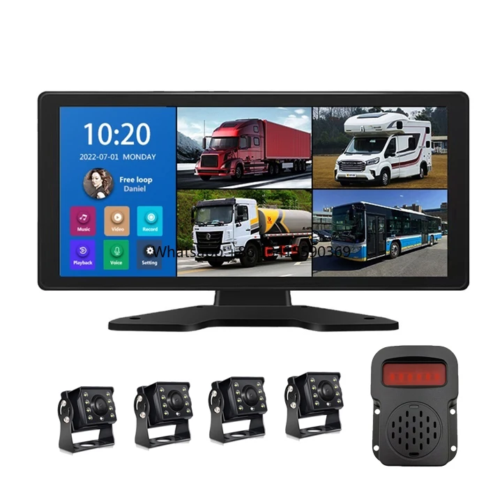 10.36 Inch 4-Channel Split Screen Monitor Pedestrian Detection Reverse Camera Waterproof BSD Recording System Kit for Vehicle