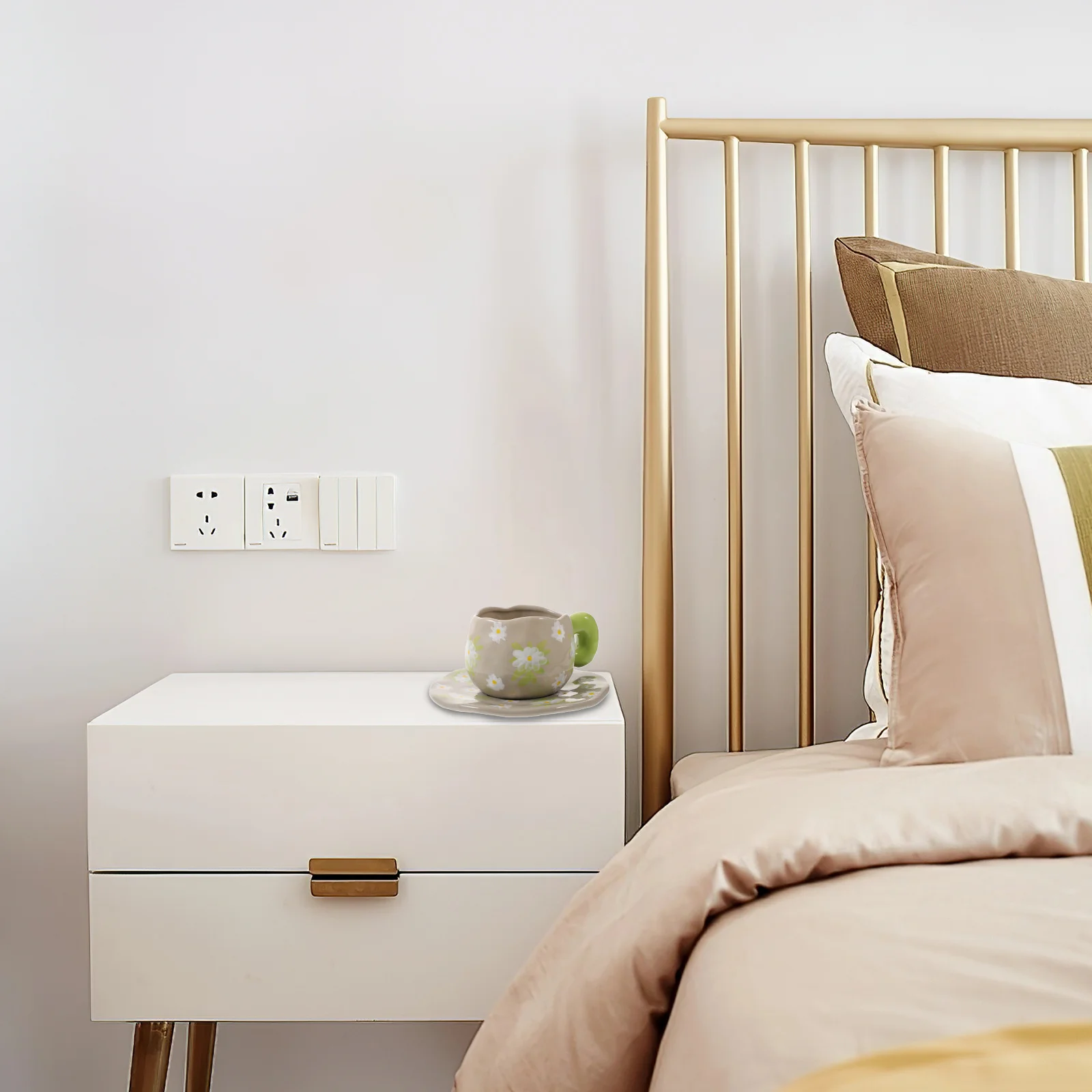 1Set Desktop Ceramic Mug with Saucer Set Easy to Clean Sturdy Material Perfect for Coffee Tea Water Home Office Use