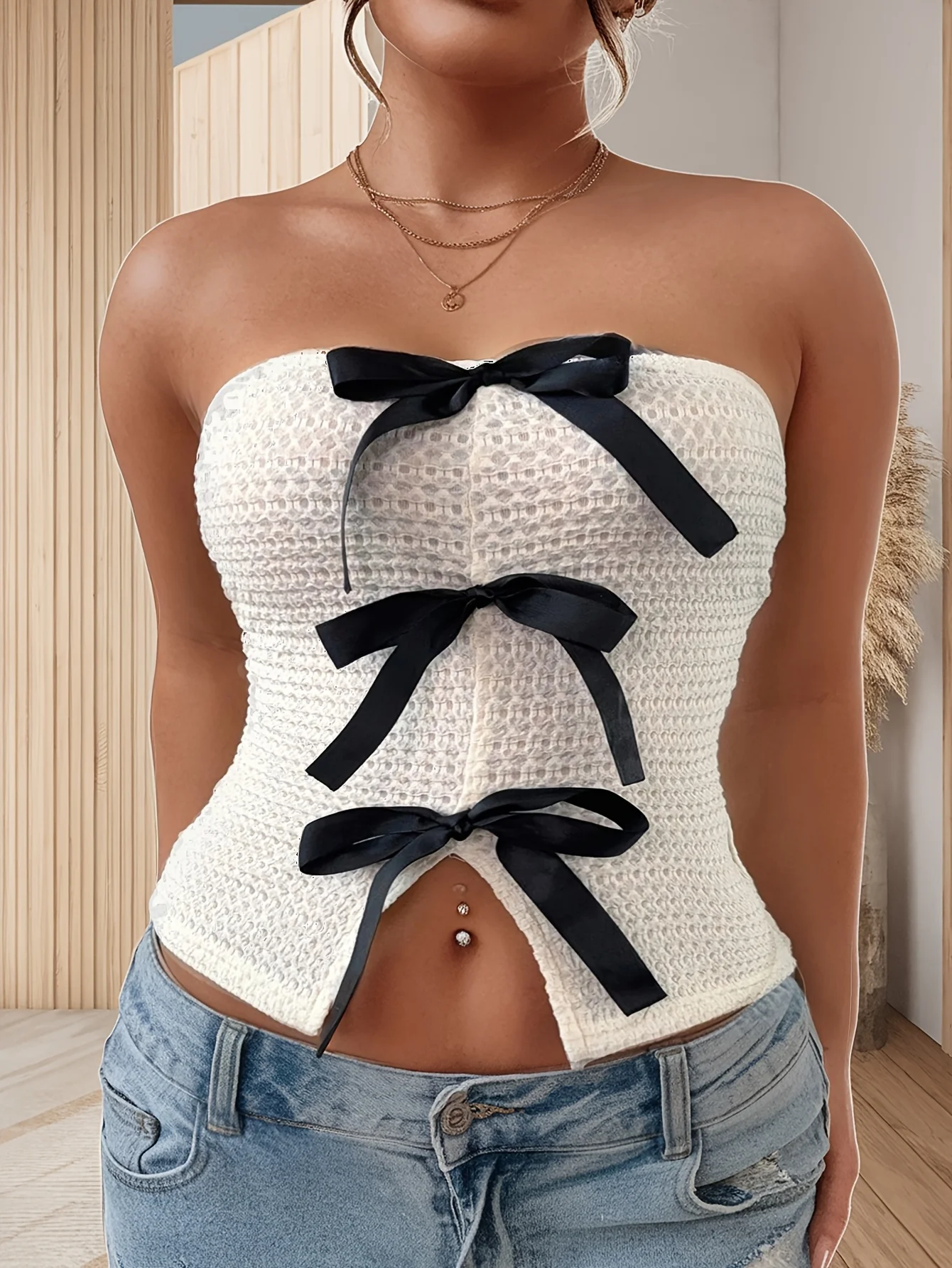Off-shoulder Tight Top Women's Tie Cut White Off-shoulder Top Women's Sleeveless Backless Short Tube Top Summer Sexy Short Top