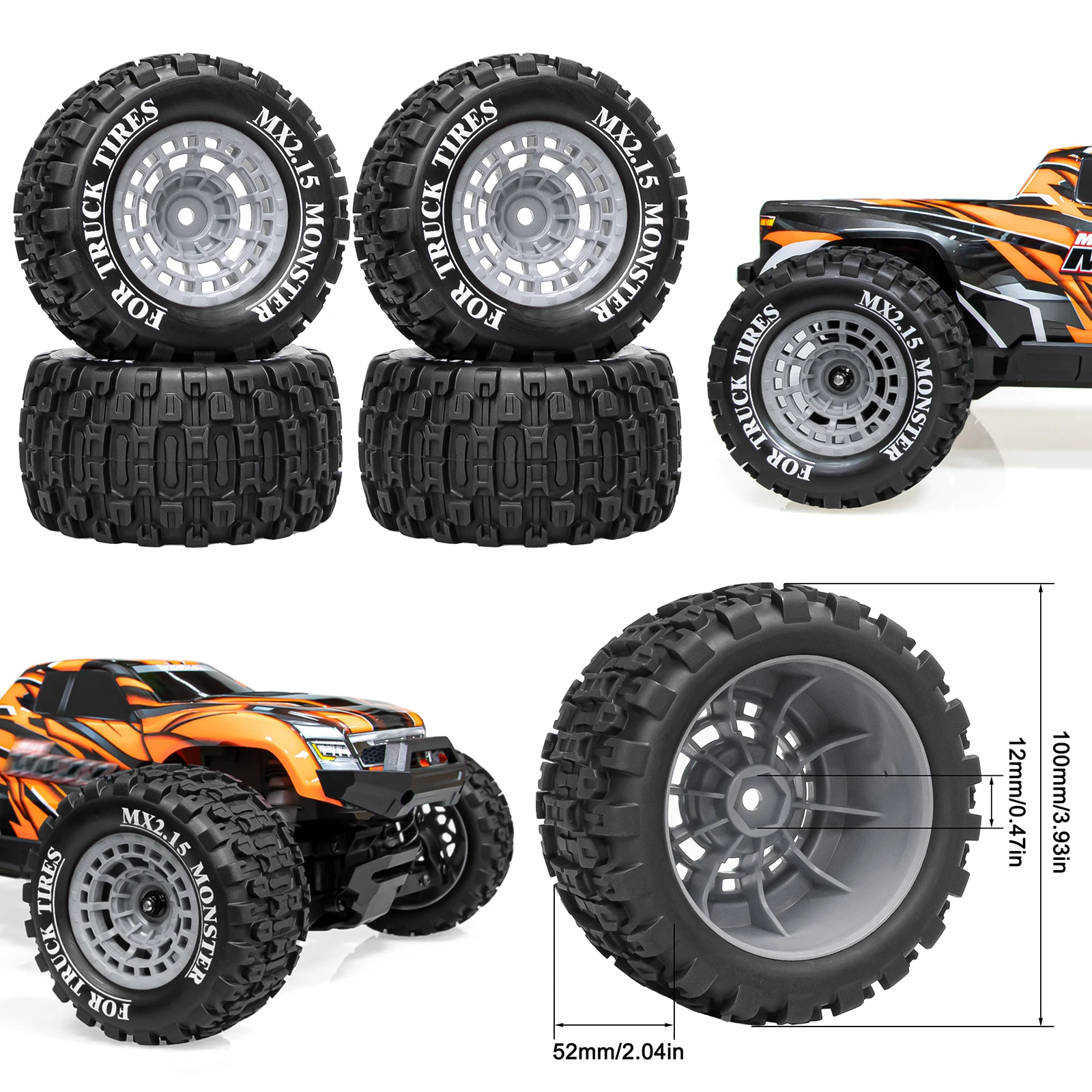 Wheel 12mm Hex Monster Truck Buggy Tires 90mm 4pcs for MJX 10208 1/10 RC Car Upgrade Parts Accessories