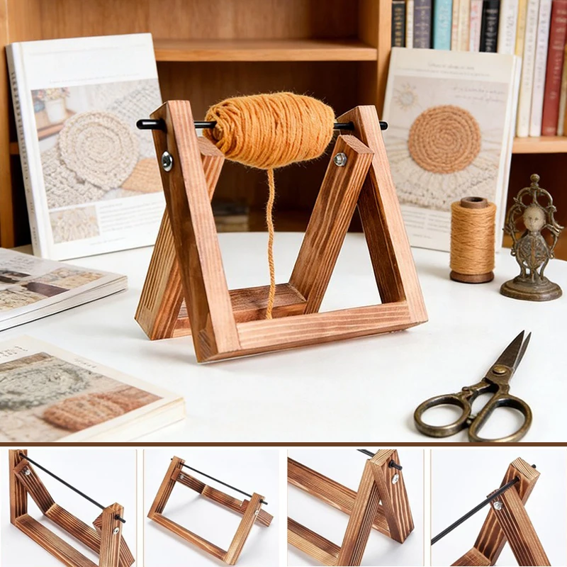 Triangle Rotating Wooden Yarn Holder Horizontal Spinner Ball Rack Storage Organizer for Crocheting and Knitting Craft Thread