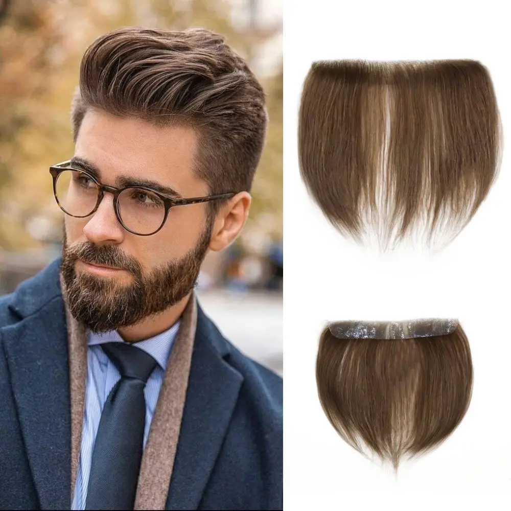 Men's Forehead Hairline Toupee 100% Human Hair PU Hairpiece, Topper for Natural Hairline Restoration,Forehead Hair