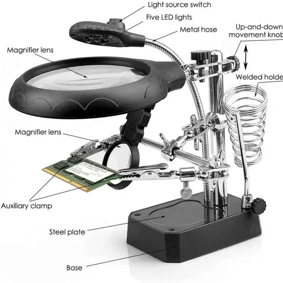 3 Hand Soldering Iron Stand Welding Tool With Magnifying Glass Illuminated Alligator Clip Holder Clamp Helping Repair