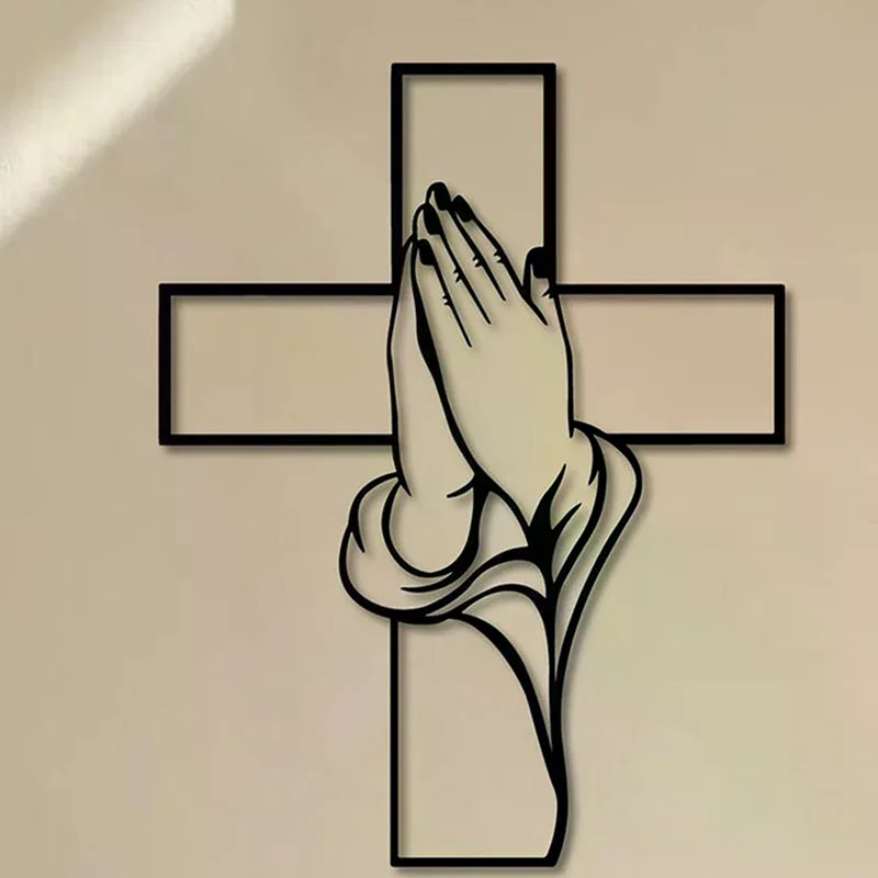 1PC Cross Art, Modern Religious Metal Wall Decor, Praying Hands Design, Easy To Hang, Perfect For Living Room And New Home Gifts