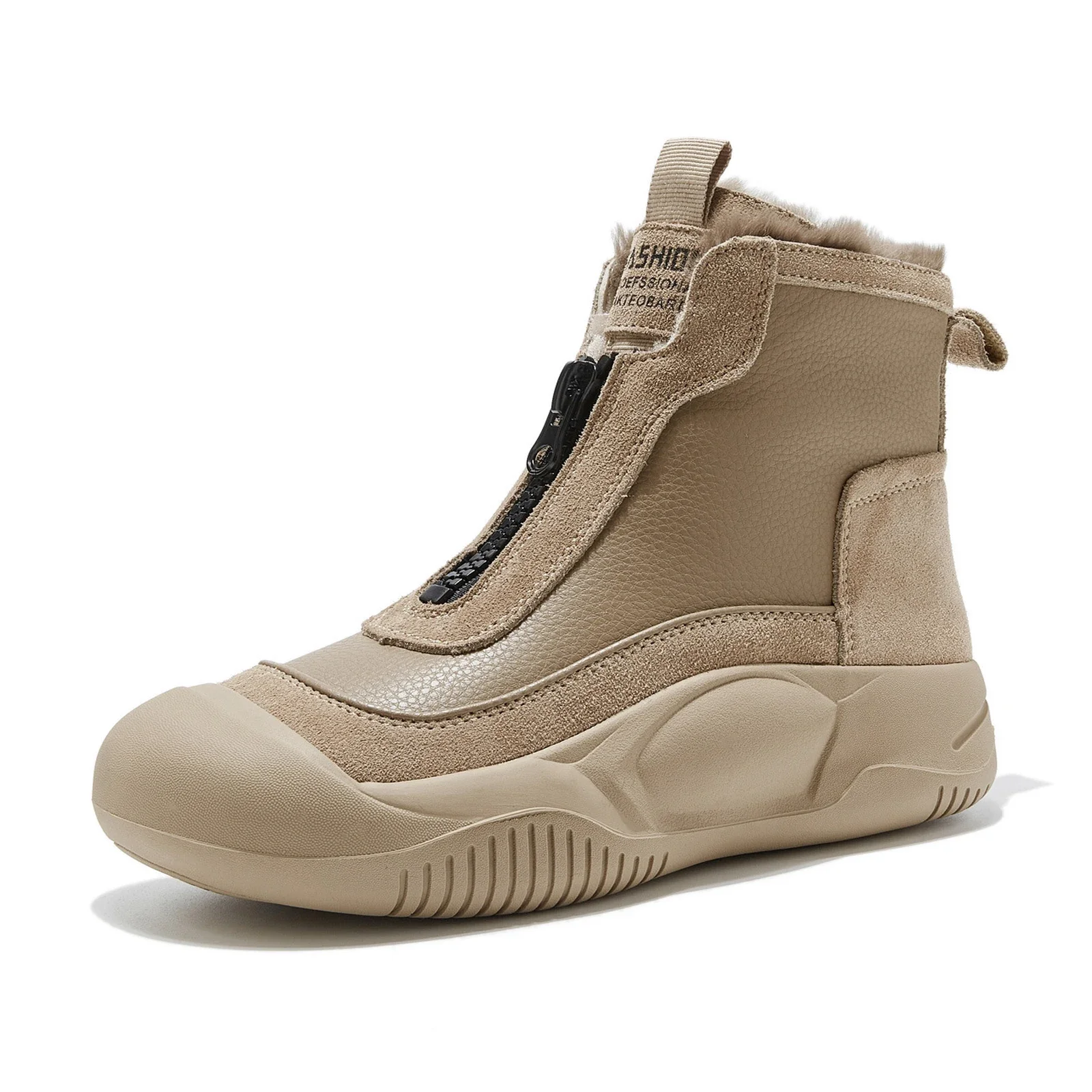 New Winter Shoes Women Snow Boots Genuine Leather Non-slip Height Increasing 4.5cm Warm Plush Young Ladies Ankle Boots D239