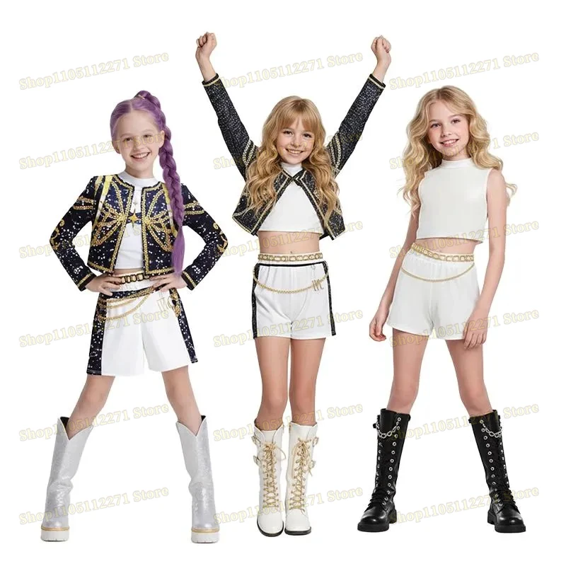2025 Girls' special occasion costumes Demon Hunter Rumi Girls Hip Hop Set Halloween Role Playing Dress Up Carnival Costume