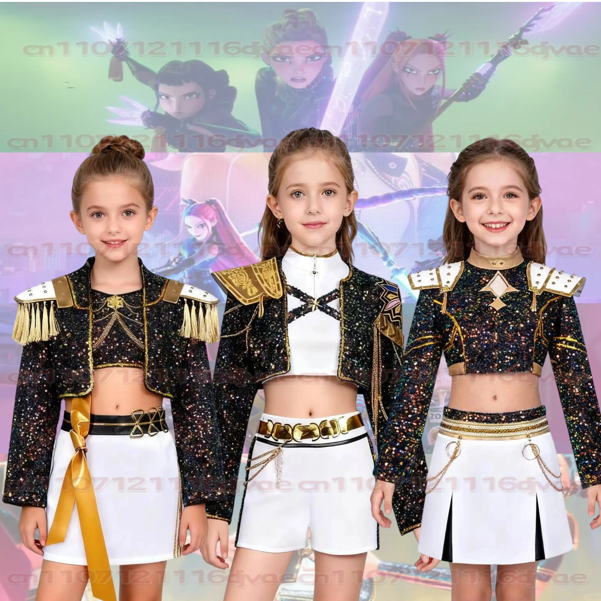 White Black Golden Huntrix Demon Hunters KPop Rumi Cosplay Costume Kids Birthday Party Dress Girls Halloween Costume