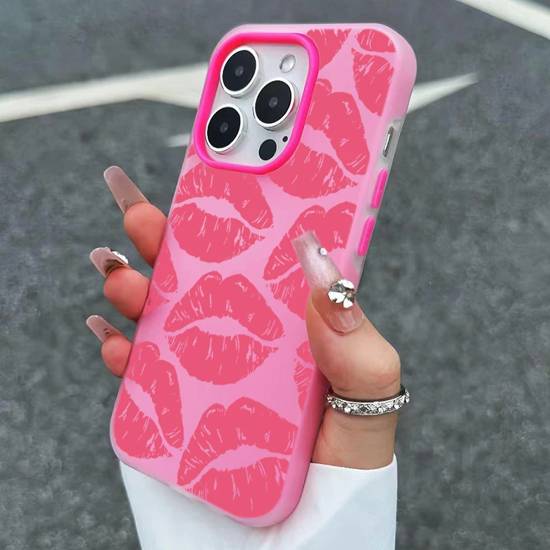 Sexy Girl Pink Lips Pattern Design 2 in 1 Matte Phone Case For iPhone 17 16 15 14 Pro Max 13 12 11 Plus Air Shockproof Cover