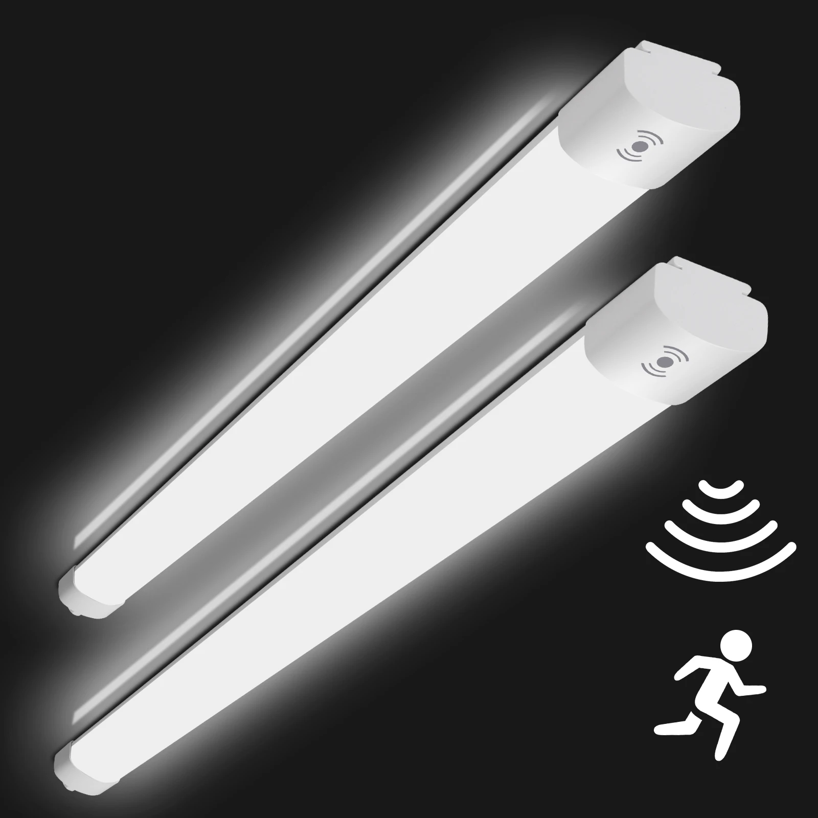 Pack of 2 LED Wet Room Lights, 60 cm, 20 W 2200 LM, IP65 Waterproof, Motion Sensor Ceiling Lamp for Hallway, Office, Stairs, Garage, Storage Room, 4000 K Neutral White