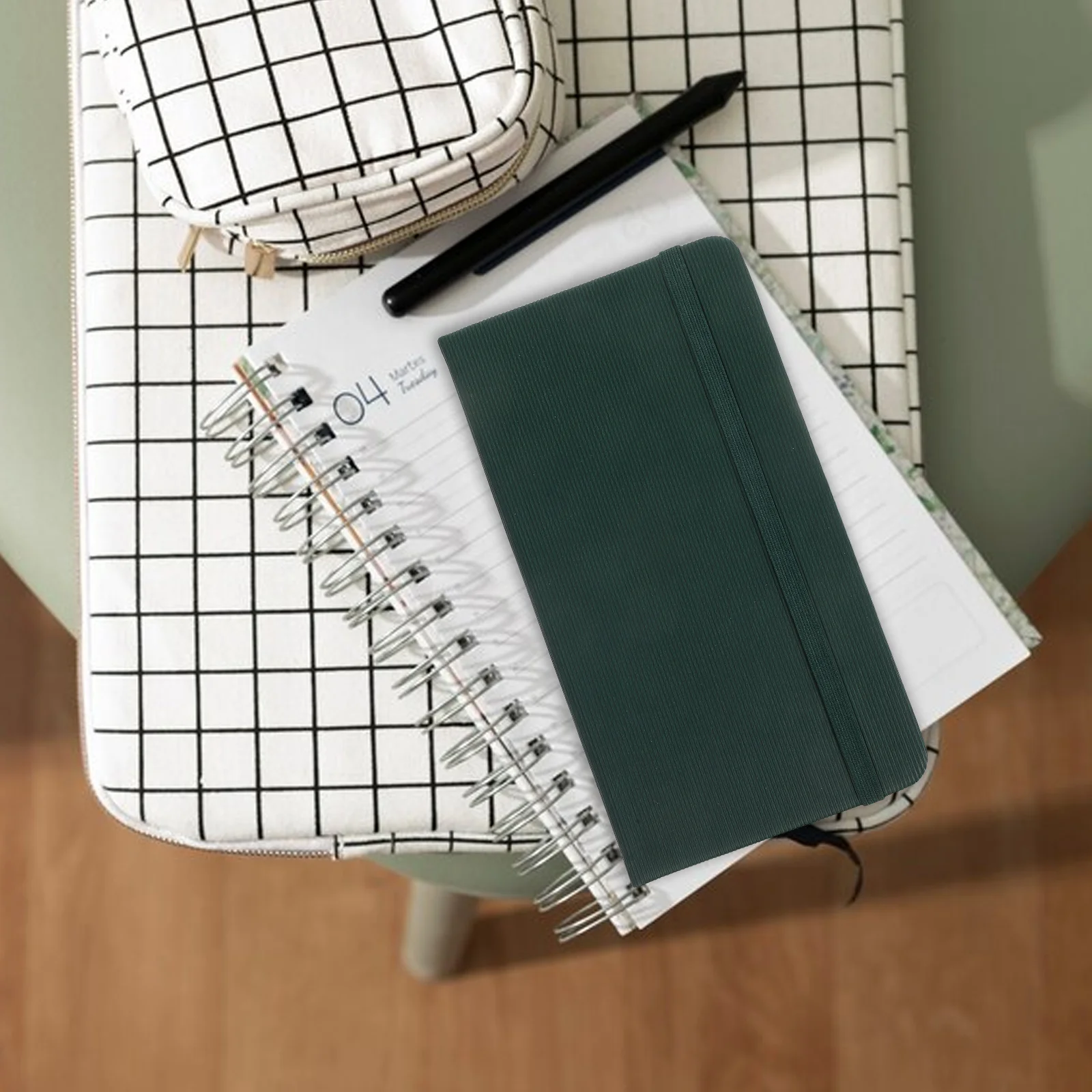 A6 Mini Notebook Dark Green Pocket Size Compact Pu Cover Elastic Closure Flat Lay Binding Portable Writing Pad For Travel