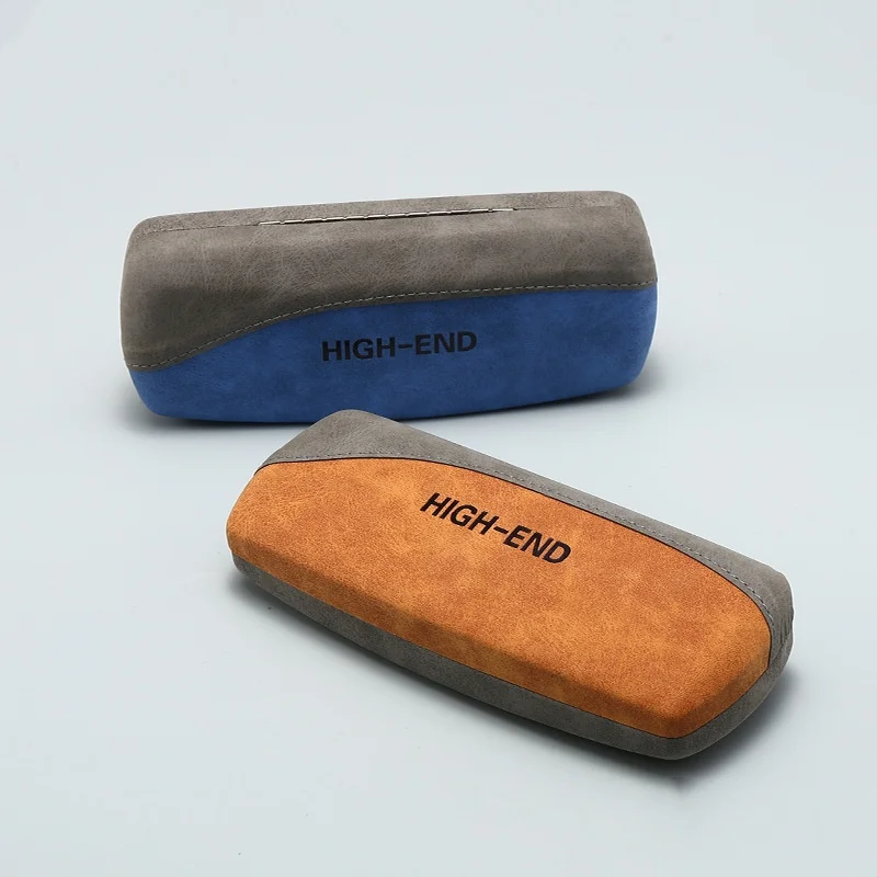 Fashionable beveled spliced leather metal eyeglass case, pressure-resistant flip cover eyeglass storage box