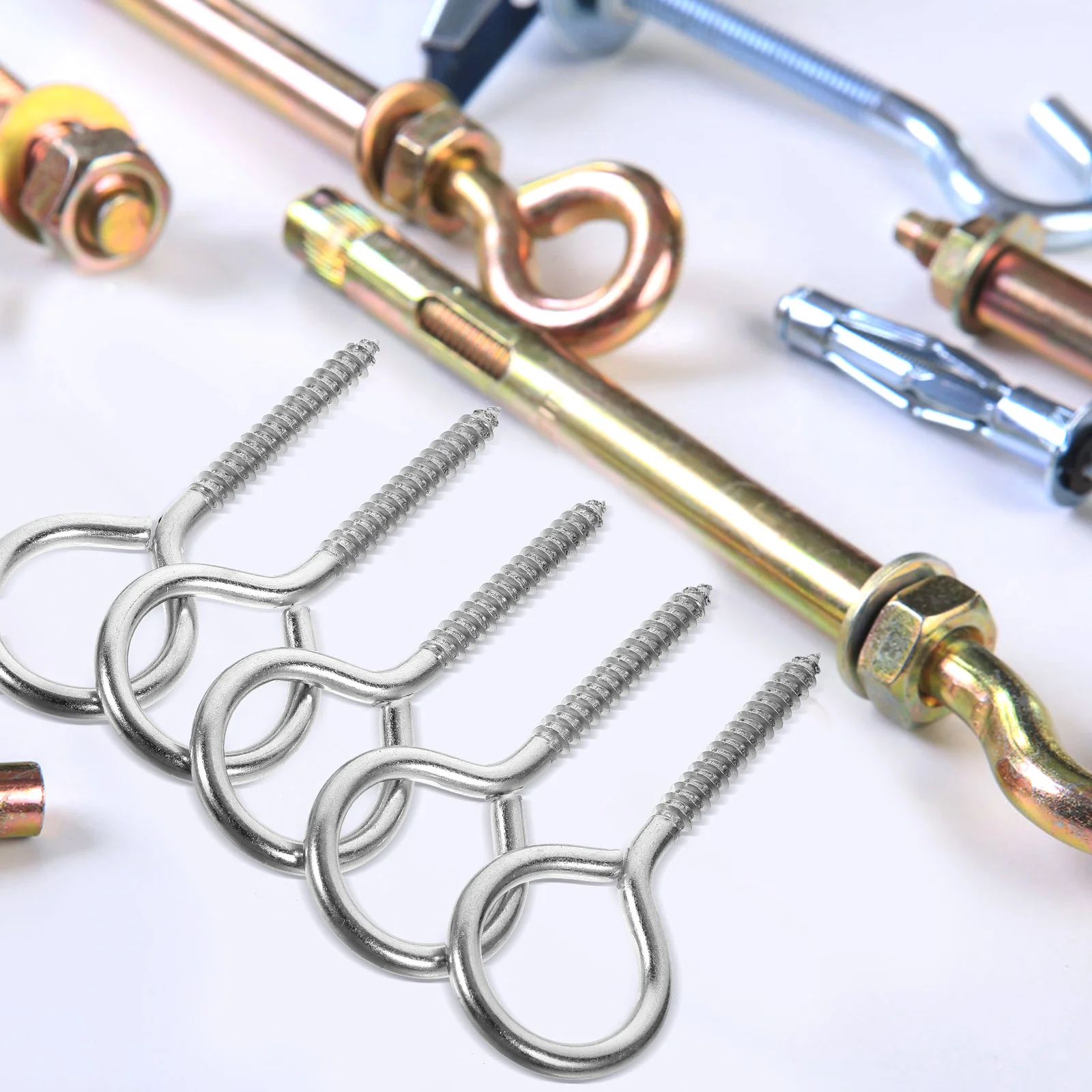 10Pcs Stainless Steel Screw Eye Hooks Heavy Duty Metal Eyelet Screws for DIY Craft Home Storage Hanging Curtains Lights Chains