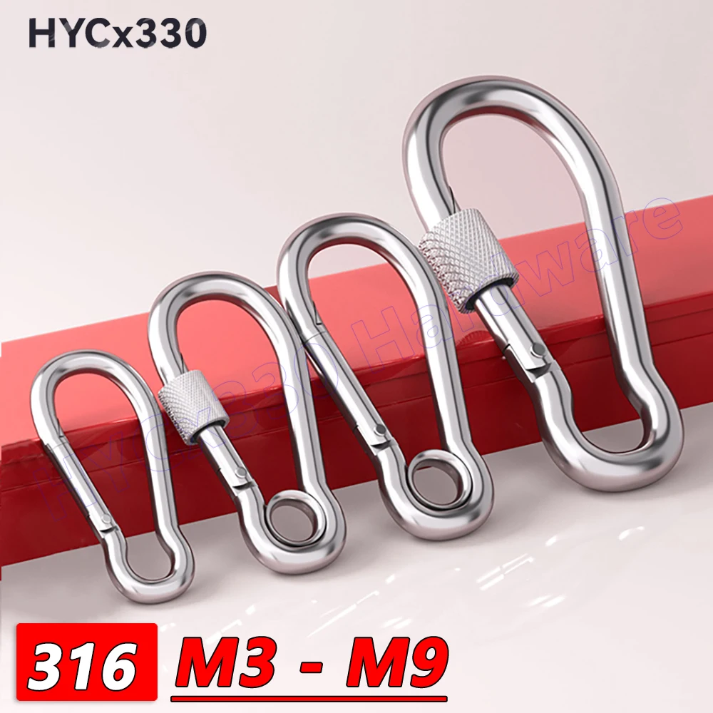 316 Stainless Steel Spring Snap Carabiner Clips Quick Link Lock Ring Shackle for Hiking Camping Durable Spring Snap Hooks