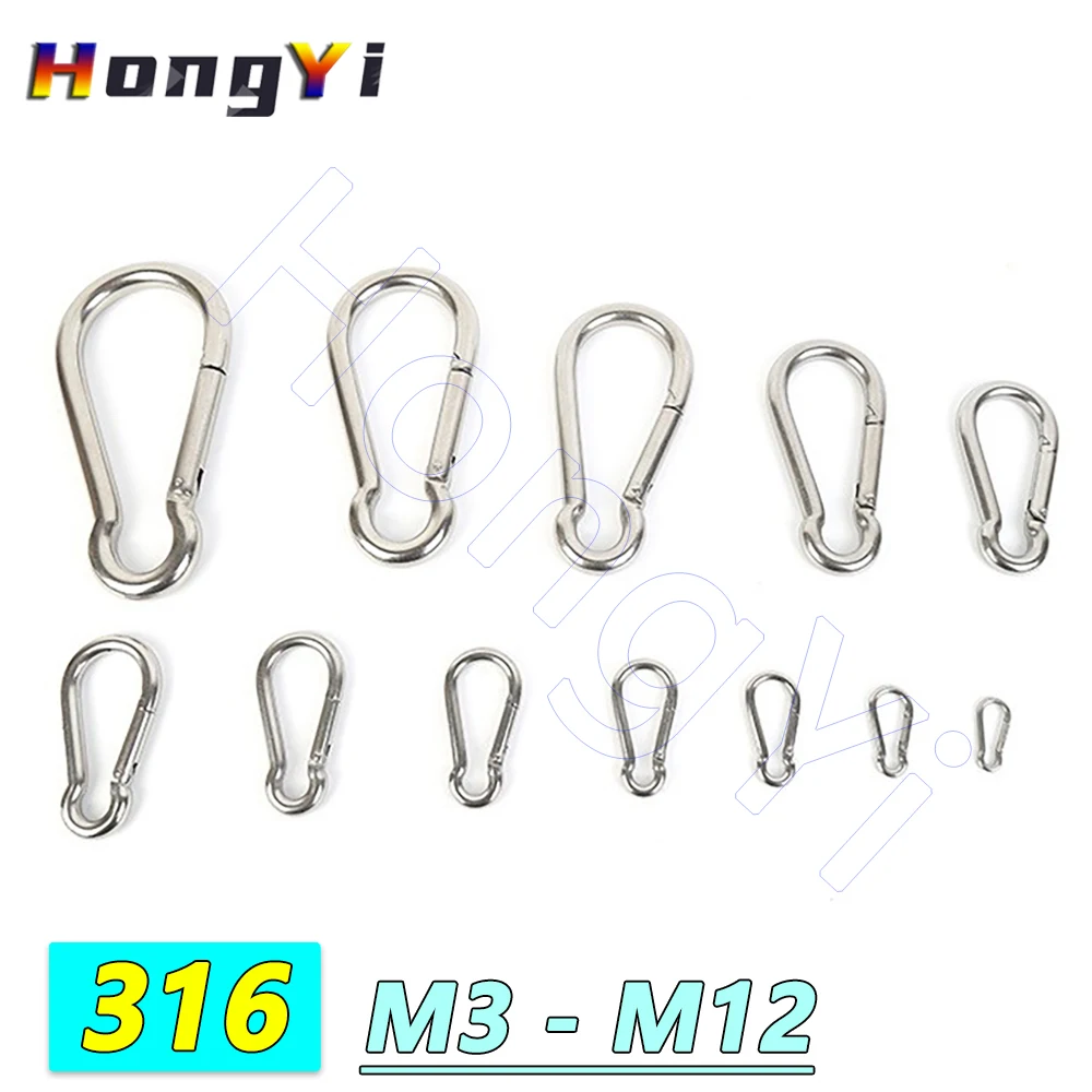 1PCS 316 Stainless Steel Spring Snap Carabiner Clips Quick Link Lock Ring Spring Snap Hooks Shackle M3 - M12