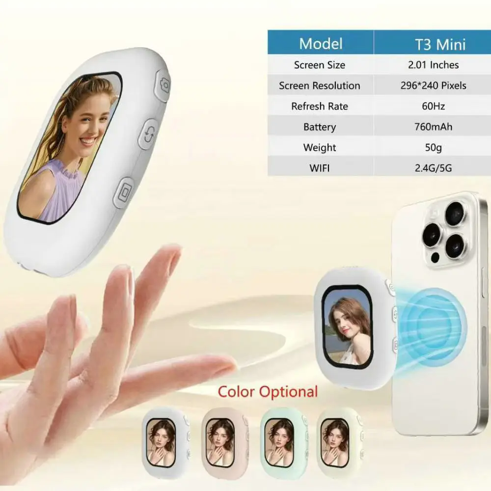 T3 Phone Selfie Monitor Screen Wireless Magnetic Mount Vlog Phone Rear Camera Selfie WiFi Bluetooth Connection for Selfie Live