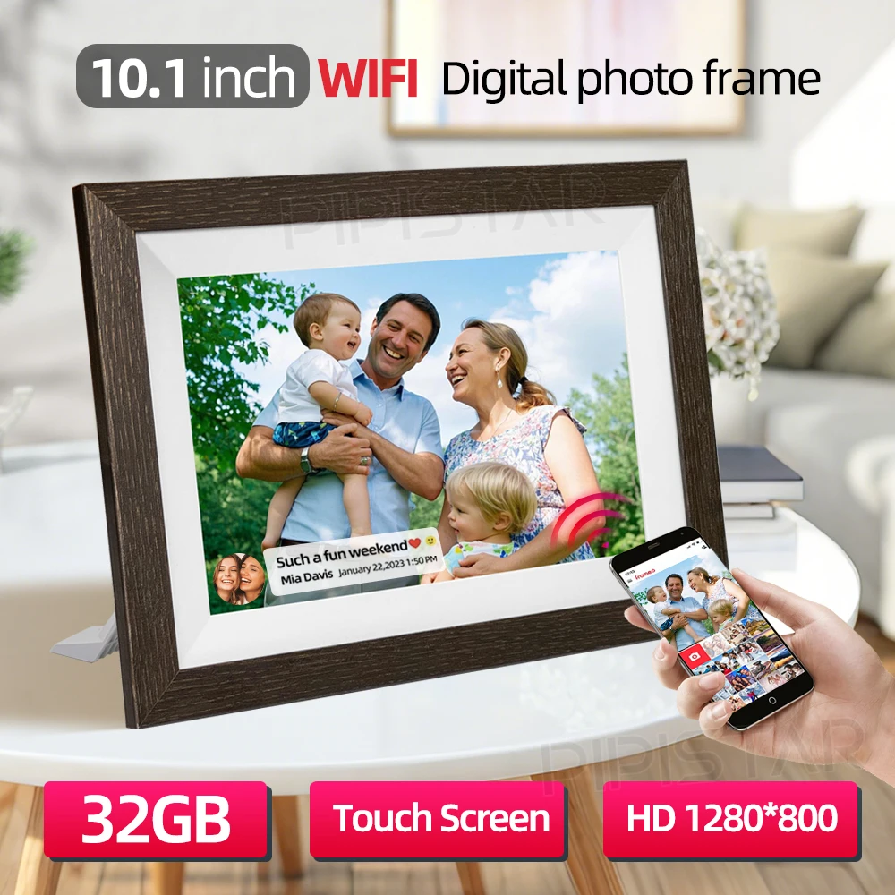 WIFI 10.1-inch digital photo frame, 32GB memory, 1280 * 800 IPS high-definition touch screen, Frameo APP