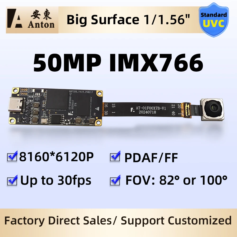 50MP IMX766 USB Camera Module PDAF Auto Focus AF No Distortion 8160x6120 100 Degree Webcam Type-c/5Pin FPC Cable Free Drive