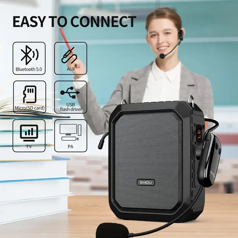 SHIDU Voice Amplifier for Teacher with Wireless Microphone Headset, IPX5 Waterproof Bluetooth Speaker, 4400mAh Power Bank M800