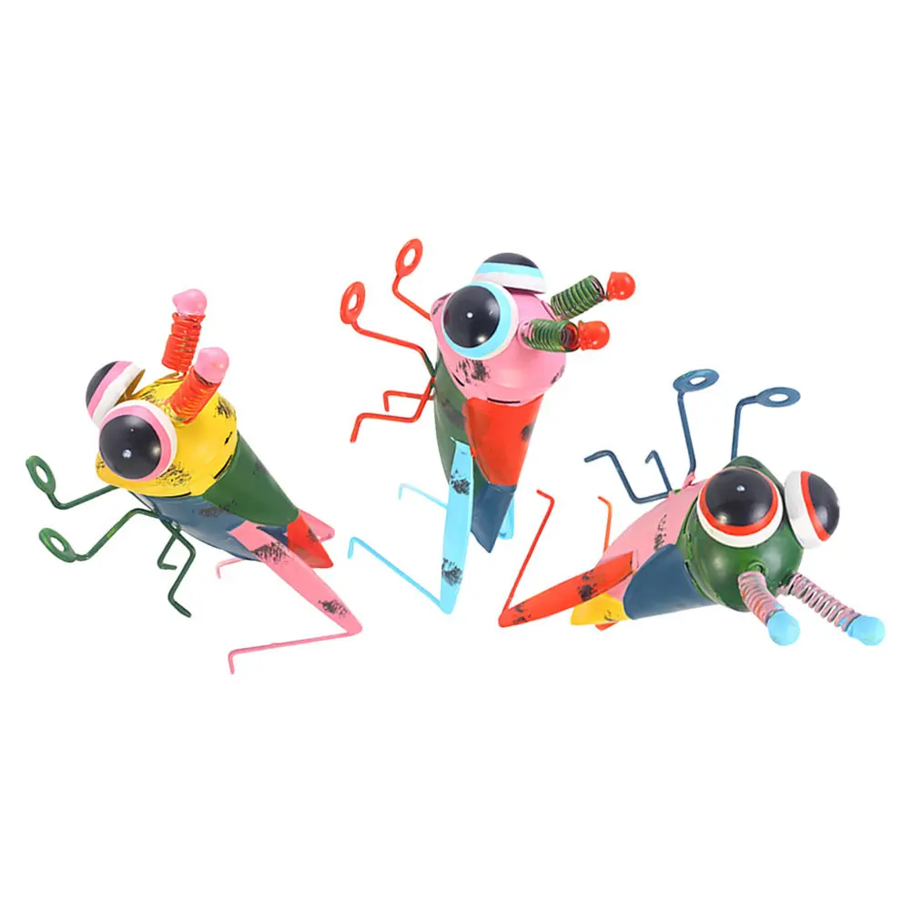 3Pcs Colorful Iron Art Locust Statues Weather Resistant Outdoor Garden Sculpture for Lawn Patio Shelf Cafe Decor - Miniature