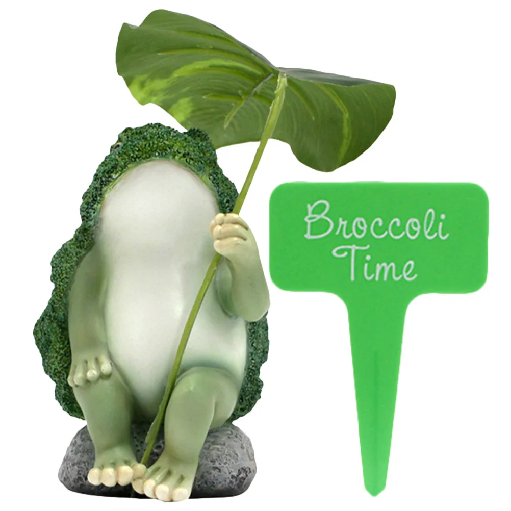 1Set Small Resin Frog Statue Broccoli Frog Sculpture with Lotus Leaf Garden Decoration for Lawn Yard Patio Tabletop Outdoor