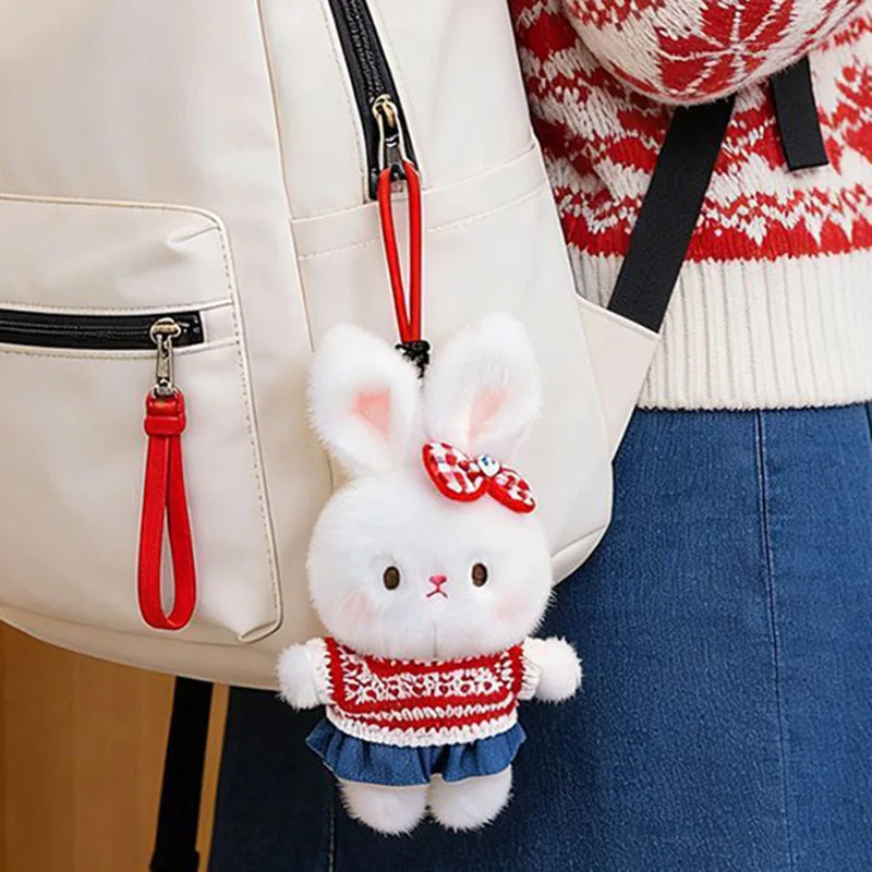 Cute Plush Rabbit Keychain Soft Bunny Bag Charm with Detachable Clothes Kawaii Sheep Plush Pendant for Backpack Car Key Gift