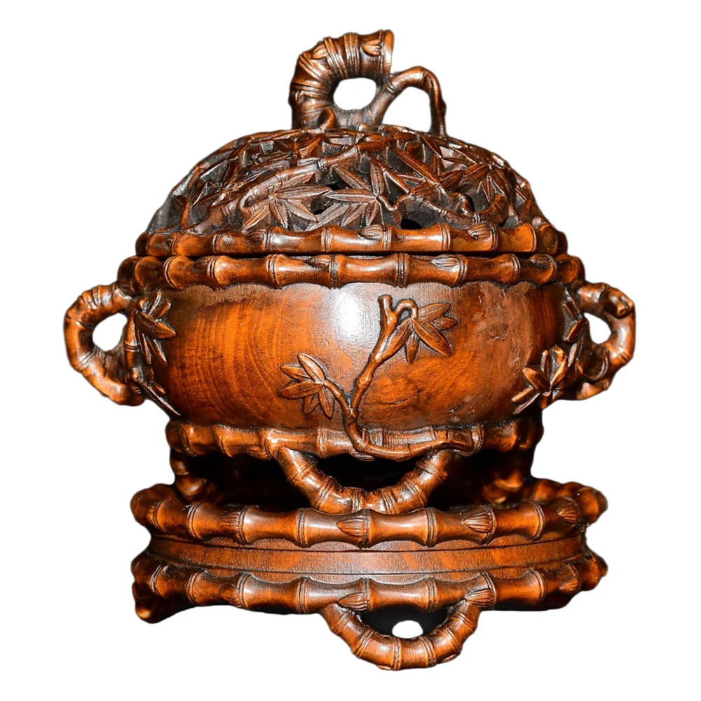 Statues Figures Wooden Bamboo Carved Incense Burner Oriental Decorative Figurine Blessing Harmony Purity Elegance Serenity