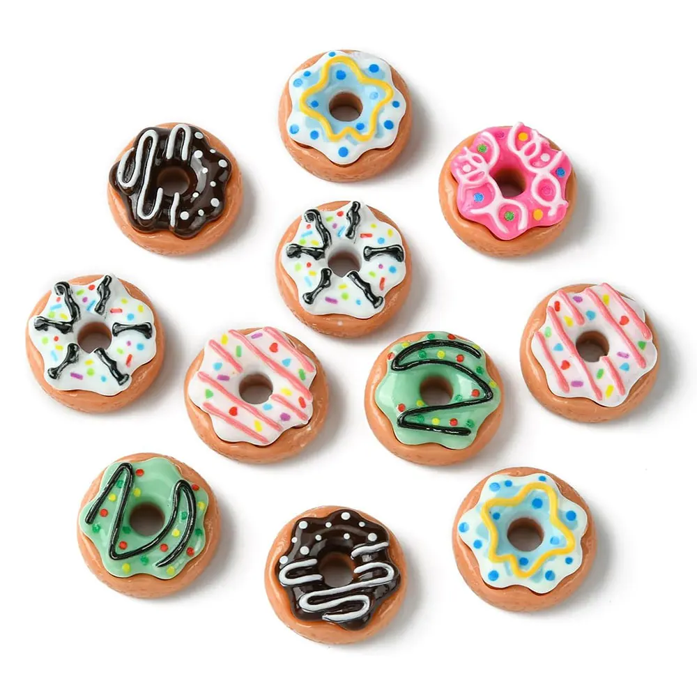 6/12pcs Mixed Resin Donuts Miniatures, Flatback Charms Embellishments for DIY Craft Projects Home Decor Supplies