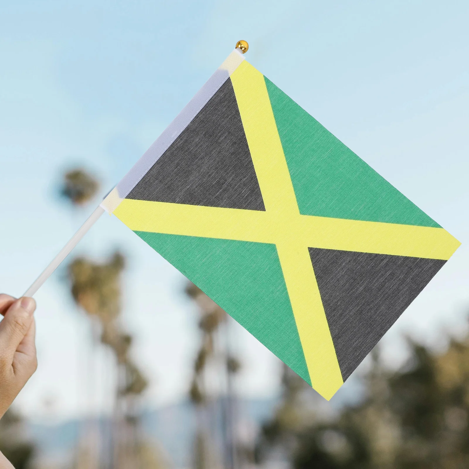 100Pcs Mini Handheld Jamaica Flags Small Jamaican Flags on Stick for Party Decorations Jamaican Flag Hand Waving Supplies