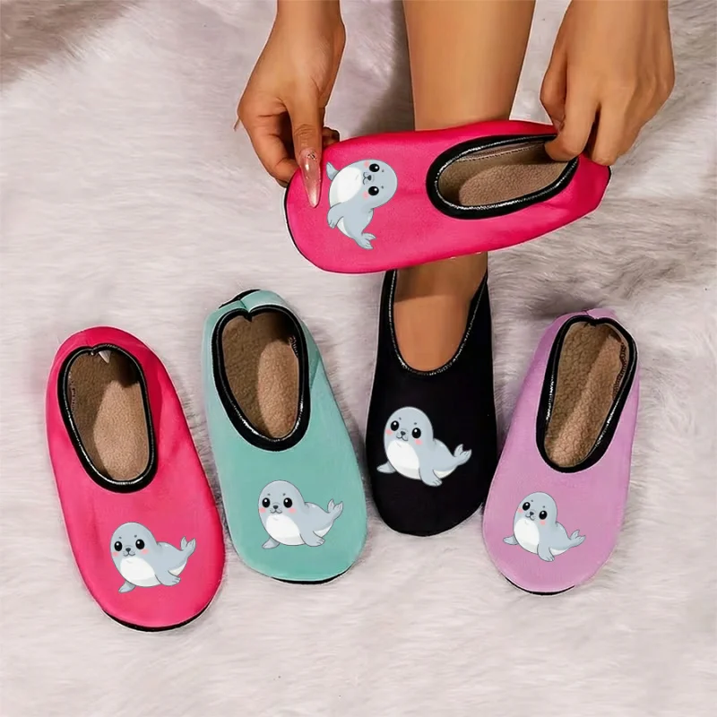 Four season wearable couple cartoon bird print with thin velvet lining, breathable, high elasticity, anti slip floor slippers