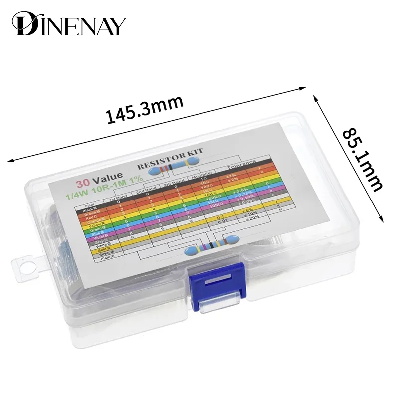 600pcs 1% Resistor Set Resistance 1/4W Metal Film Resistors Kit 10Ohm ~1M Ohm 30Values Electronic Components Kit