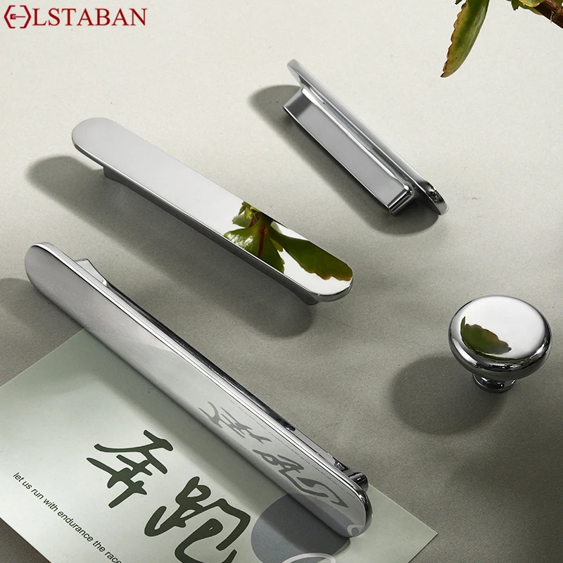 Bright Silver Cabinet Handle Chrome Wardrobe Closet Drawer Pull Light Luxury Furniture Cupboard Knob Kitchen Cabinet Door Handle