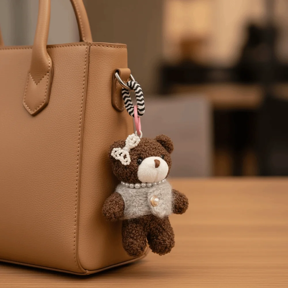 Cute Cartoon Plush Bear Keychain Funny Bow Pearl Furry Bear Pendant Ornaments Kawaii Bag Hanging Charms Girls