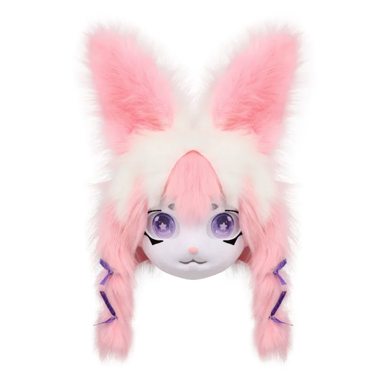 Lolita Anime Girls Plush Animal Head Mask with Ears Fursuit Headgear Furry Cosplay Masquerade Costume Accessories