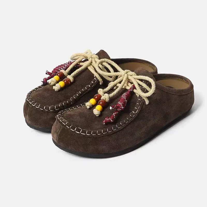 Beaded Lanyard Decorate Suede Slip-On Slippers For Women Closed Toe Thick Sole Casual shoes Female 2026 Spring New Style Sandals