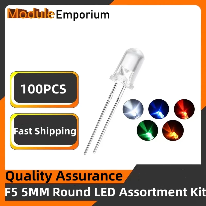 New 100pcs Transparent Round 5mm super bright water clear Green Red white Yellow Blue Light LED bulbs emitting diode F5