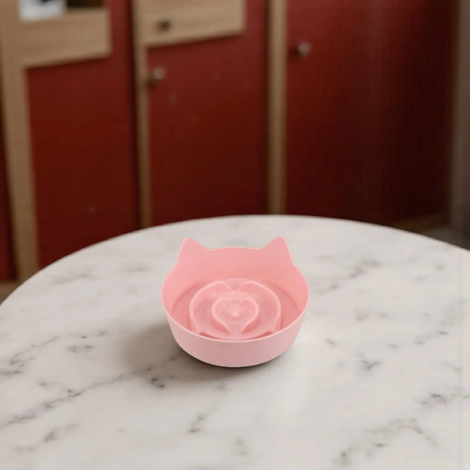 Cat Bowl Slow Feeder Cute Ear Design Non Slip Base For Kitten Small Pet Shallow Feeding Dish Candy Colors