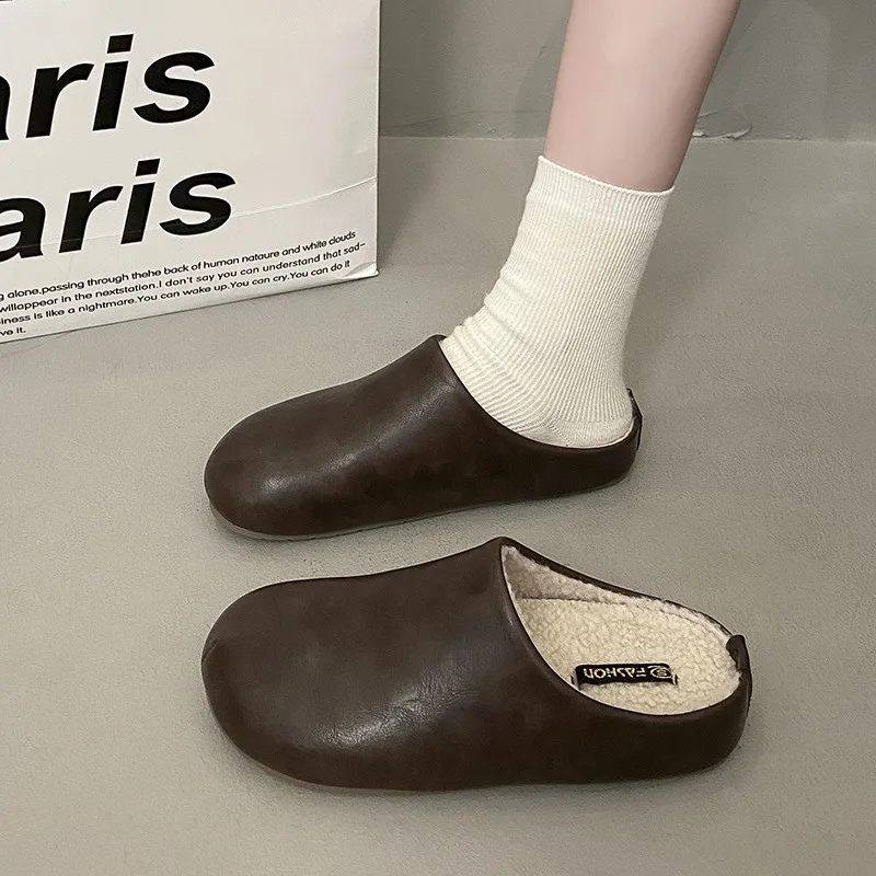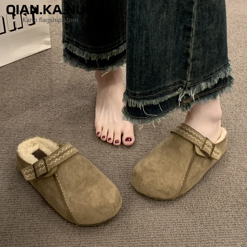 Mules For Women 2026 Shoes Slipper Warm Big Size Pantofle Slides Cover Toe Fashion Winter New Luxury Retro Big Size Mules For Wo
