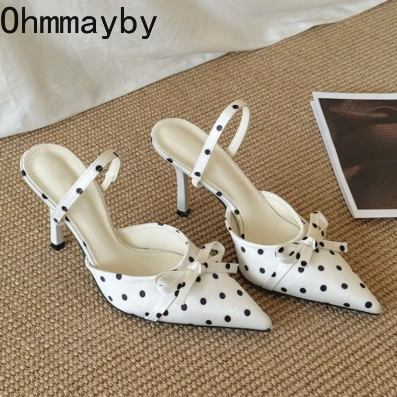Pointed Toe High Heels Women Dot Sandals 2026 Summer Singbacks Mules Shoes Elegant Butterfly-knot Stripper Party Sandalias