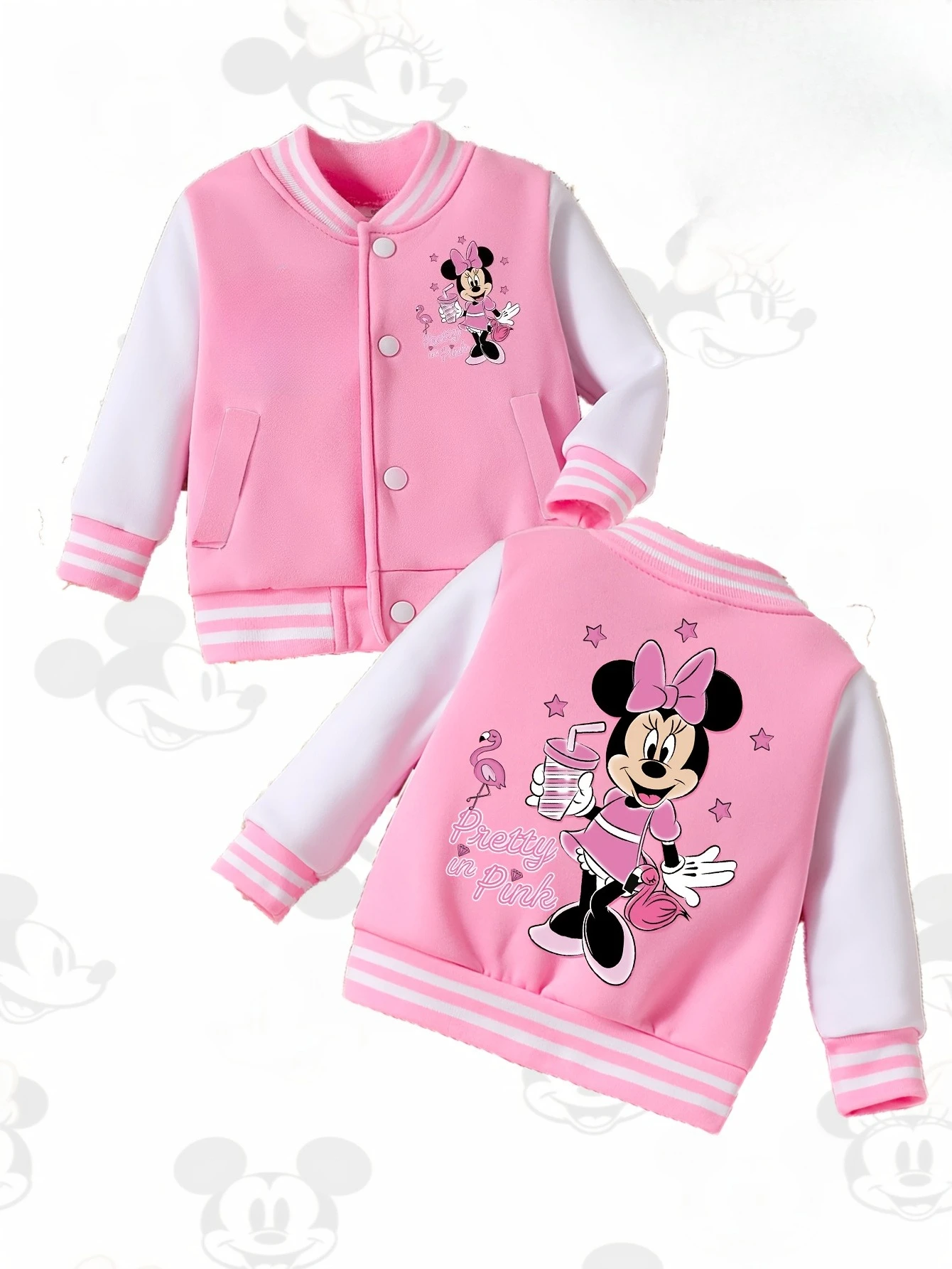 Cartoon Mickey Minnie Print Baseball Jacket Girl Boy Long Sleeve Spring Winter Outfit Anime Character Minnie Trend Kids Jackets