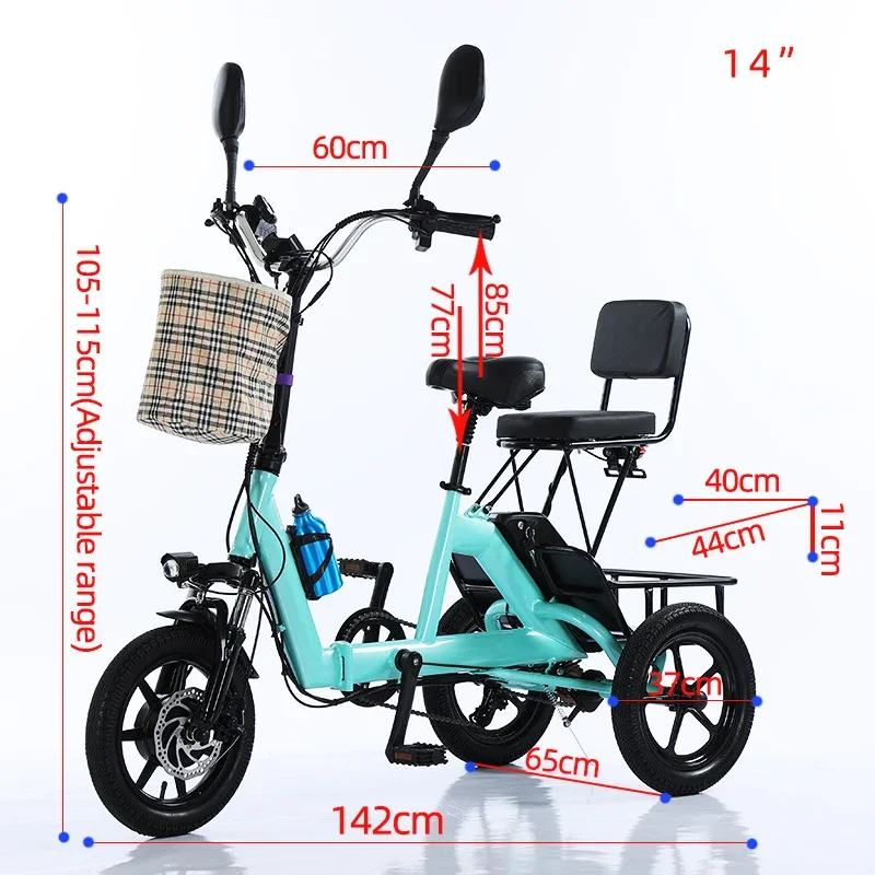 14" Folding Electric Tricycle for Adults, 48V Lithium Battery, Pedal Assist, Lightweight Commuter E-Trike