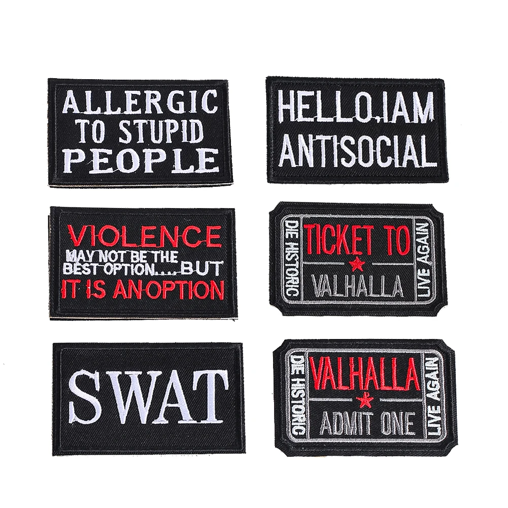 Trendy Square English Letter Embroidered Hook and Loop Tactical Morale Badge Creative Versatile Clothing Backpack Decor Patch