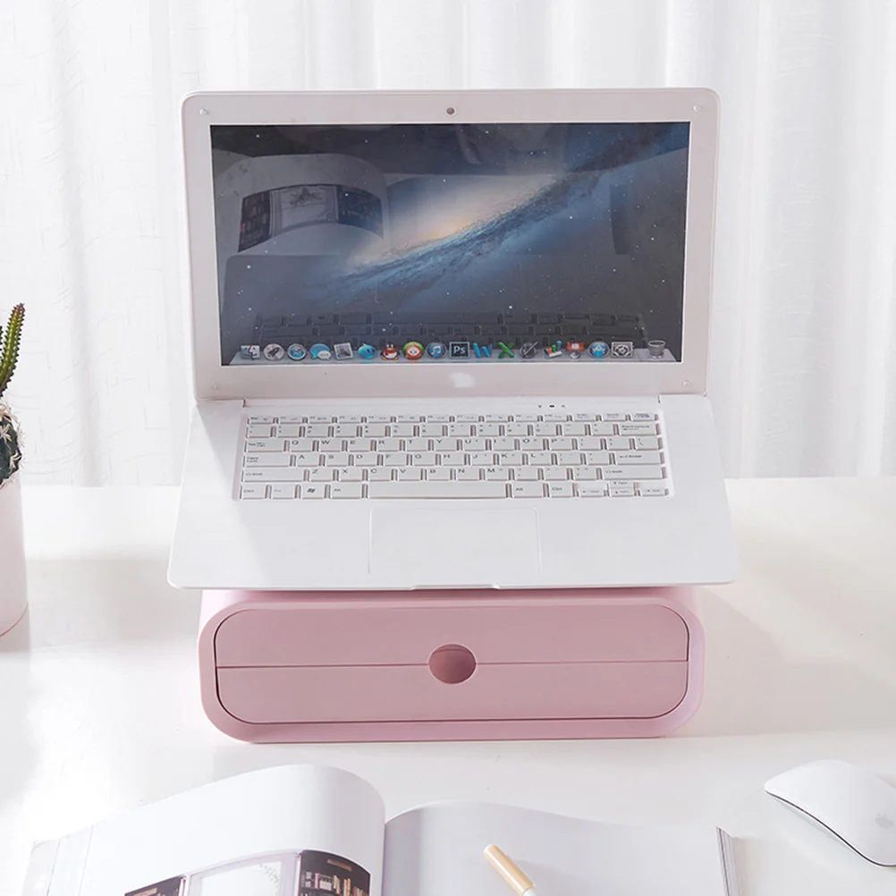 Computer Monitor Height Stand with Drawer Storage Rack Wood Tabletop Space-efficient Organizer for Placing Files and Sundries
