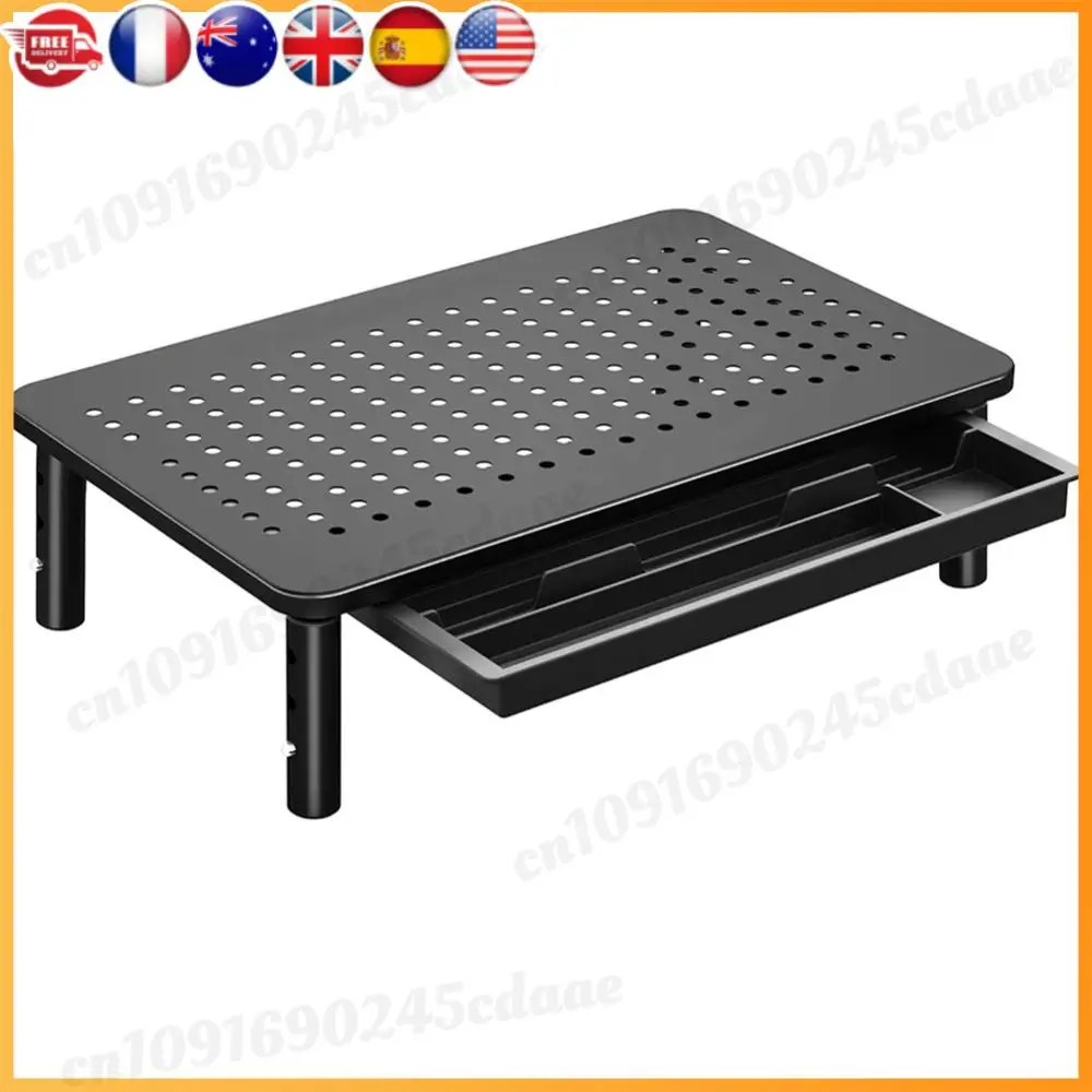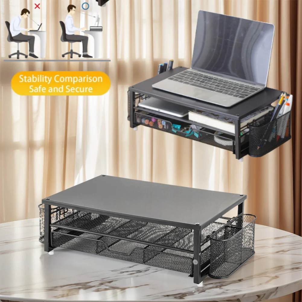 Ergonomic Monitor Stand for Desk Laptop Riser with Drawer Stainless Steel Computer Stand Desktop Storage Shelf