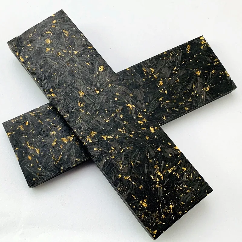 2pcs CF Carbon Fiber Black Marble Resin DIY Knife Handle Material Gold Foil Powder Compression Plate