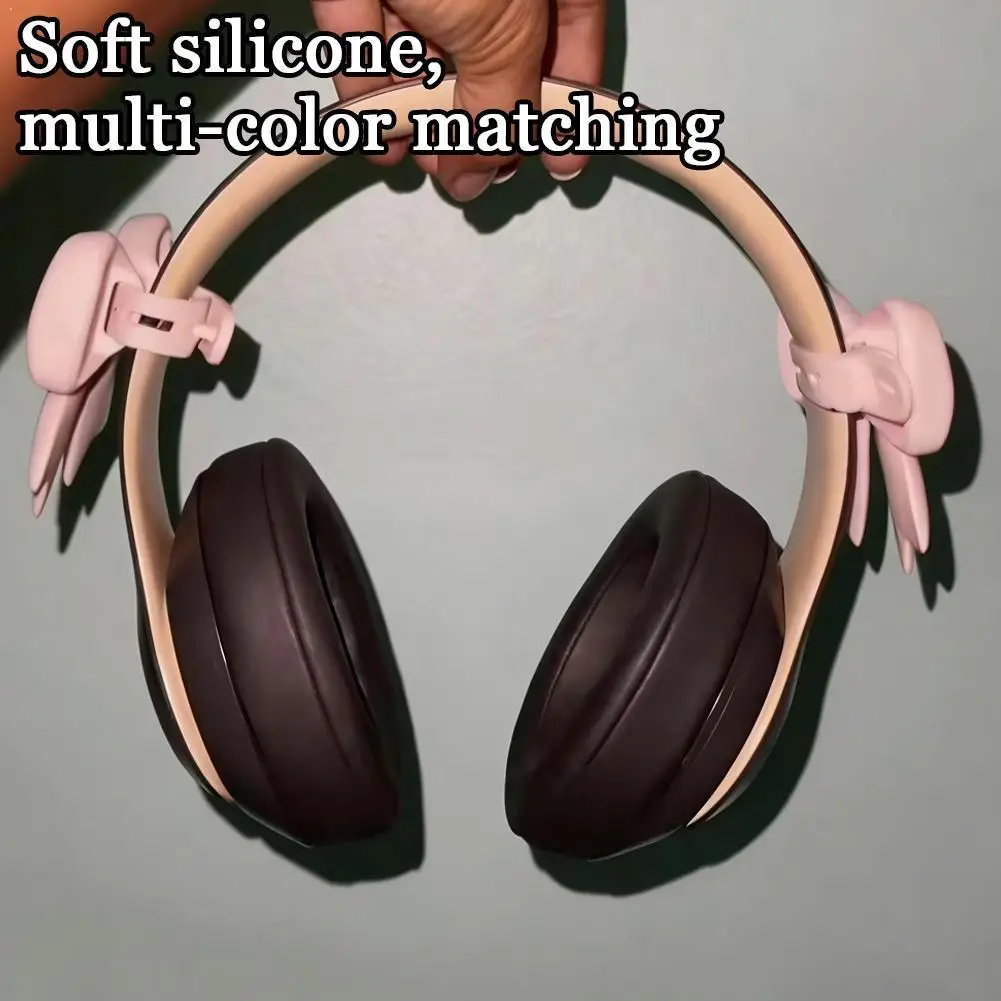 Silicone Bow Headphone Accessory, 2 Pack 3D Bows Decor for Headphones, Silicone Bows Headphone Clip Decor Attachment Accessories