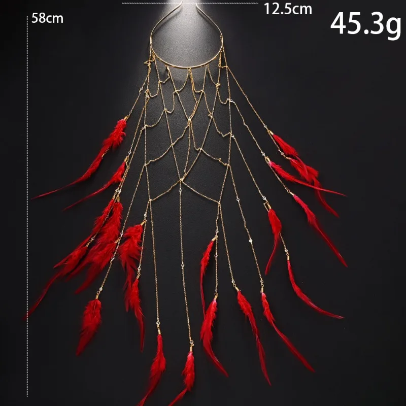 Feather Headband with Mesh Chain Fairy Style Hair Accessory for Banquet Dress Mori Temperament Elegant Party Wear