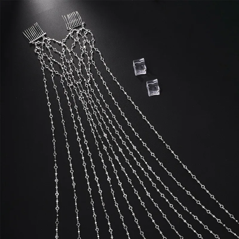 Bridal Hair Chain European American Mesh Tassel Plug Comb with Rhinestone Niche Design Hair Accessory for Wedding Temperament