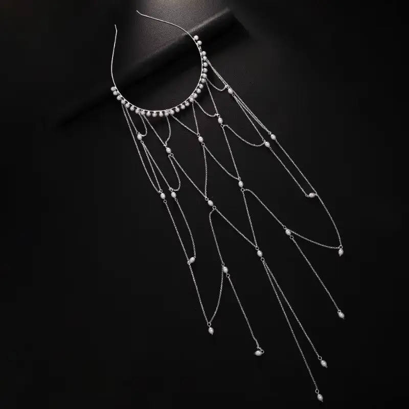 Bridal Wedding Headband European American Imitation Pearl Pendant Tassel Grid Headgear Hair Accessories for Women
